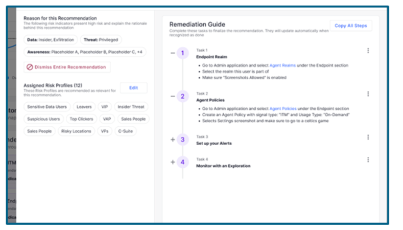 Focus investigations on the most urgent risks, teams can view risky users by location, severity of risk, behaviors or risk profiles.